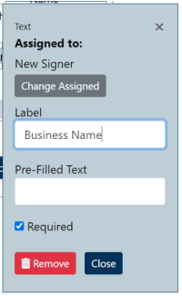 - Assigned to: This specifies the signer who should fill this fields, if the e-sign request will have multiple recipients completing it. (See the section on multiple signers below.)