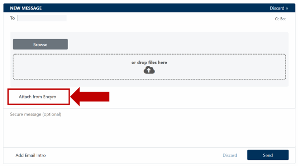 To forward a single message with its files: On your secure message view in your Encyro account: